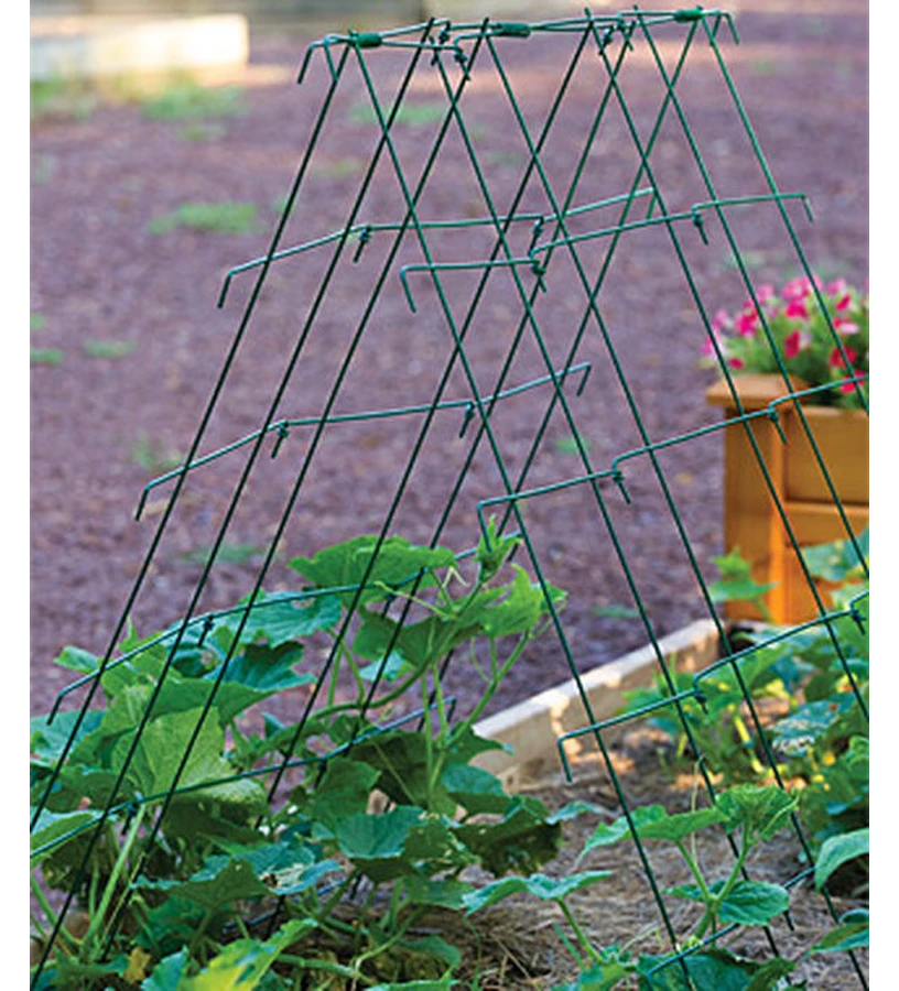 Cucumber and squash pyramid grows healthier plants with better fruits and makes harvesting a sinch. Growing plants off the ground reduce diseases, pests and increase the quality of the fruits.