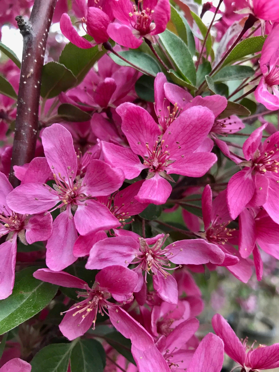 ‘Purple Prince’ is an outstanding rosy bloom crab. The purple bronze foliage and bright flowers rivals other flowering crabs, but Purple Prince does not suffer from stem splitting and is faster growing.