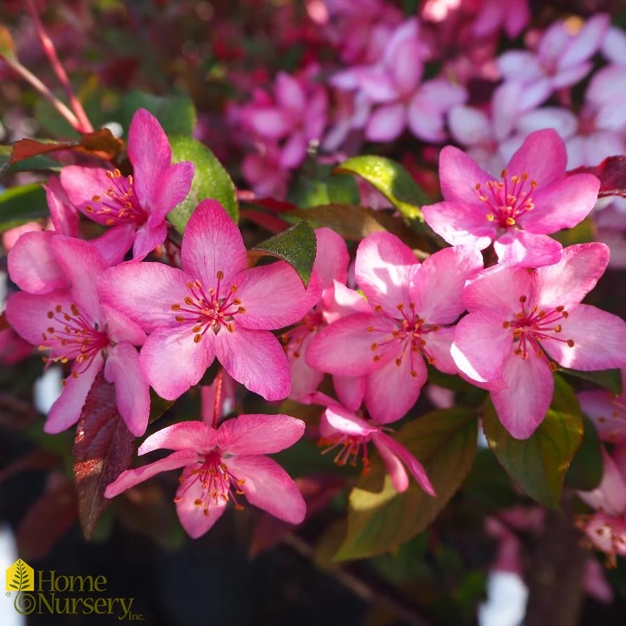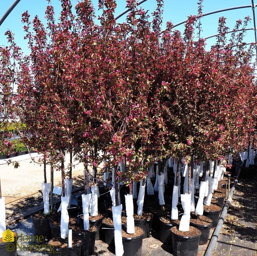 One of the prettiest purple-leafed crabapples, Malus Royal Raindrops® is an upright, spreading deciduous tree of broadly rounded habit with a long season of interest. Masses of fragrant, magenta-pink single appear in mid-spring.