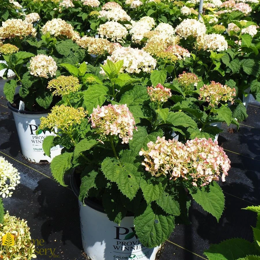 Invincibelle Wee White® hydrangea is positively ground-breaking: it’s the first dwarf ‘Annabelle’ type hydrangea in the world! This cute little landscape plant ensures that any landscape can enjoy the reliability, low-maintenance, and season-long beauty of hydrangeas. It reaches just 1-2.5′ (.3-.7 m) tall and naturally grows as a tidy, rounded mound. Each flower emerges a soft, blush pink before changing to white, and is held up on a strong, supportive stem for a display that looks more like a bouquet of flowers than a landscape plant. Blooming begins in early summer and continues through frost, with new flowers appearing the whole time. Versatile and floriferous, it just might be the solution to your landscape problems. Winner of the 2018 Direct Gardening Association Green Thumb award; available in better garden centers in spring 2018.