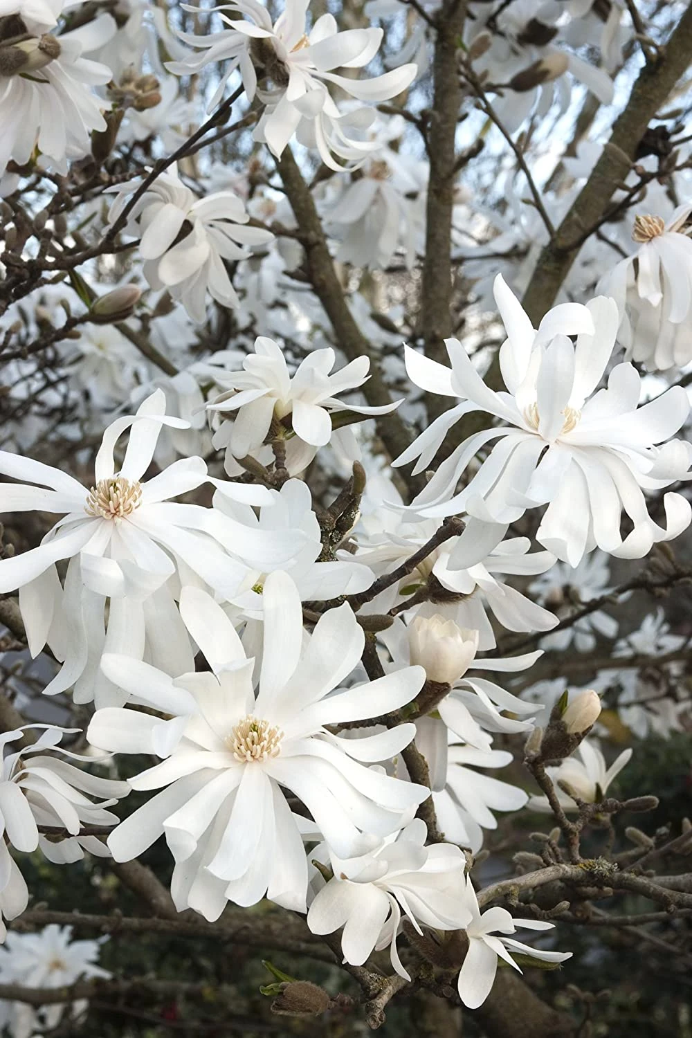 With Showy 3-4″ fragrant white flowers, this hardy magnolia can easily be used as a single specimen or a foundation planting. Dark green leaves with striking, gray bark. Adapts to slightly acidic, rich soils. Full sun produces best flowers. (zones 4-9) Average mature height & width: 15′ to 20′