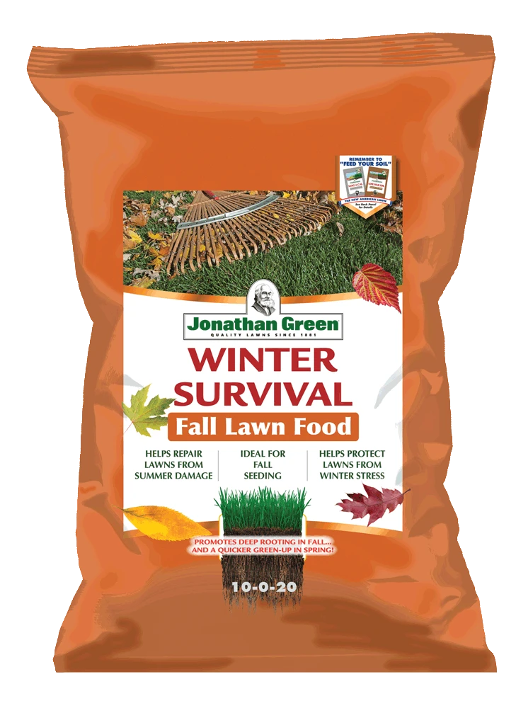 Jonathan Green’s Winter Survival Fall Lawn Food is the ideal fall lawn fertilizer to spread anytime from early September through mid-November because air temperatures are cooler and the soil is still warm enough for grass roots to grow deep. Winter Survival provides the nutrients to help boost newly seeded lawns as well as help established lawns grow thicker and greener grass with deeper roots.
